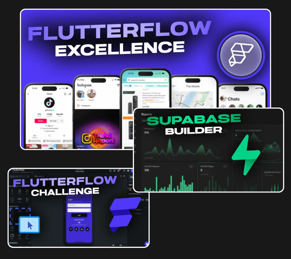 Accédez au pack de formations FlutterFlow Ultimate qui se compose de FlutterFlow Challenge, FlutterFlow Excellence et de Supabase Builder. Rejoignez les trois formations à un tarif imbattable et créez dès maintenant des applications incroyables.